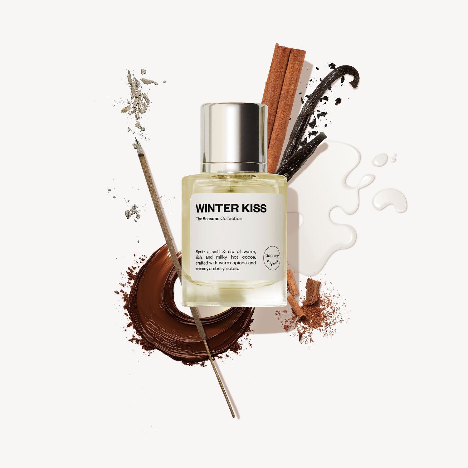 Cozy up with chemistry that smells like the perfect cup of hot cocoa on a snowy winter day. Winter Kiss celebrates the indulgence and gourmand sweetness of the winter season. This Dossier Originals scent opens with a warm, comforting embrace of milky accord, clove, nutmeg, and rum notes. The fragrance unfolds into a decadent, smoky, and rich heart of chocolate, incense, and cinnamon before unveiling a gourmand base of vanilla, vetiver, and creamy sandalwood.A tribute to winter’s great small pleasures, this smooth and mellow scent is enveloping, soothing, and addictive.